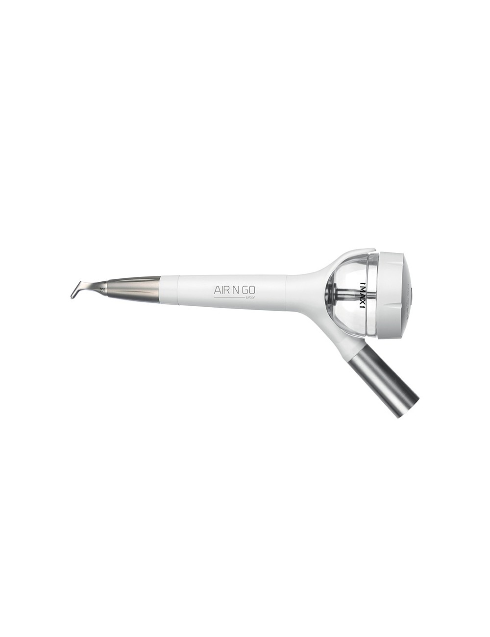 Generación de aeropulidores AIR-N-GO® easy con funciones duales: función SUPRA para pulido supragingival: pulido profiláctico diario y función PERIO para pulido subgingival: mantenimiento y tratamientos de periodoncia y periimplantitis. Una sola pieza de mano para cubrir todas las necesidades de Pulido y tratamiento. Comienzo rápido: conexión directa al conector de alta velocidad de la pieza de mano. Proporciona mayor libertad de movimiento para unos tratamiento más precisos, rotación de 360º. 4 boquillas intercambiables: Supra (standard), Perio easy, Perio y Perio Maintenance (opcionales). Pieza de mano mucho más fácil de limpiar, las partes principales pueden desmontarse. Compuesto por: 1 pieza de mano AIR-N-GO® easy con adaptador según referencia, 1 boquilla SUPRA de 120º, 1 kit intro de polvo """"CLASSIC"""" de 10 sobres multisabor y 2 sobres de polvo """"PEARL"""", 1 kit de AIR-N-GO® easy maintenance (jeringa de grasa de silicona, cepillos aplicadores de grasa de silicona, juntas de recambio, jeringa, cánula y sondas de limpieza).""