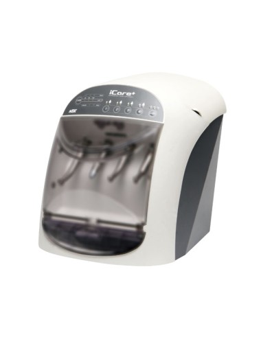 Sistema automático de limpieza desinfección y lubricación para instrumental rotatorio hasta 4 instrumentos en 13 minutos. Sencillo automático rápido eficaz control permanente de los parámetros conexión universal de instrumentos rotatorios validación trazabilidad reconocimiento interno/externo de instrumentos. Reproducción de cliclos en el tiempo. ICARE+ C2 funciona con los productosNCLEAN Y NCID