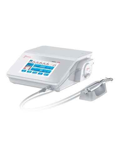 El Motor de Implantología Implanter cuanta con 8 programas memorizables, 6 niveles de flujo de agua de refrigeración y un micromotor sin escobillas potente de hasta 80 N.cm. La pantalla LCD Color touch con superficie de vidrio hace el funcionamiento de la unidad de control fácil e intuitivo. la superficie de vidrio es fácil de limpiar y puede ser manipulada incluso con guantes húmedos.