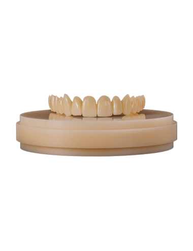 Composite Cad Cam para restauraciones provisionales de larga duración. Entre sus ventajas destaca la producción Cad Cam rápida y eficiente para restauraciones provisionales a la medida, la más alta calidad y estética para un periodo de largo uso y seguro, especialmente adecuado en restauraciones provisionales y semipermanentes de larga duración, extraordinaria estabilidad de bordes, pulido sencillo e individualización intra y extraoralmente. No es necesario la aplicación de un Primer MMA.
