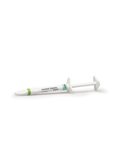 Composite de polimerización dual (DC) y foto (LC):Variolink -Esthetic es un composite de cementación fotopolimerizable y de polimerización dual.Se utiliza para la cementación adhesiva de restauraciones dentales.Produce resultados fiables e impresionantes.El composite de cementación es muy versátil y por lo tanto, ofrece una flexibilidad excepcional a la hora de elegir una solución adecuada para todo tipo de restauraciones y materiales.