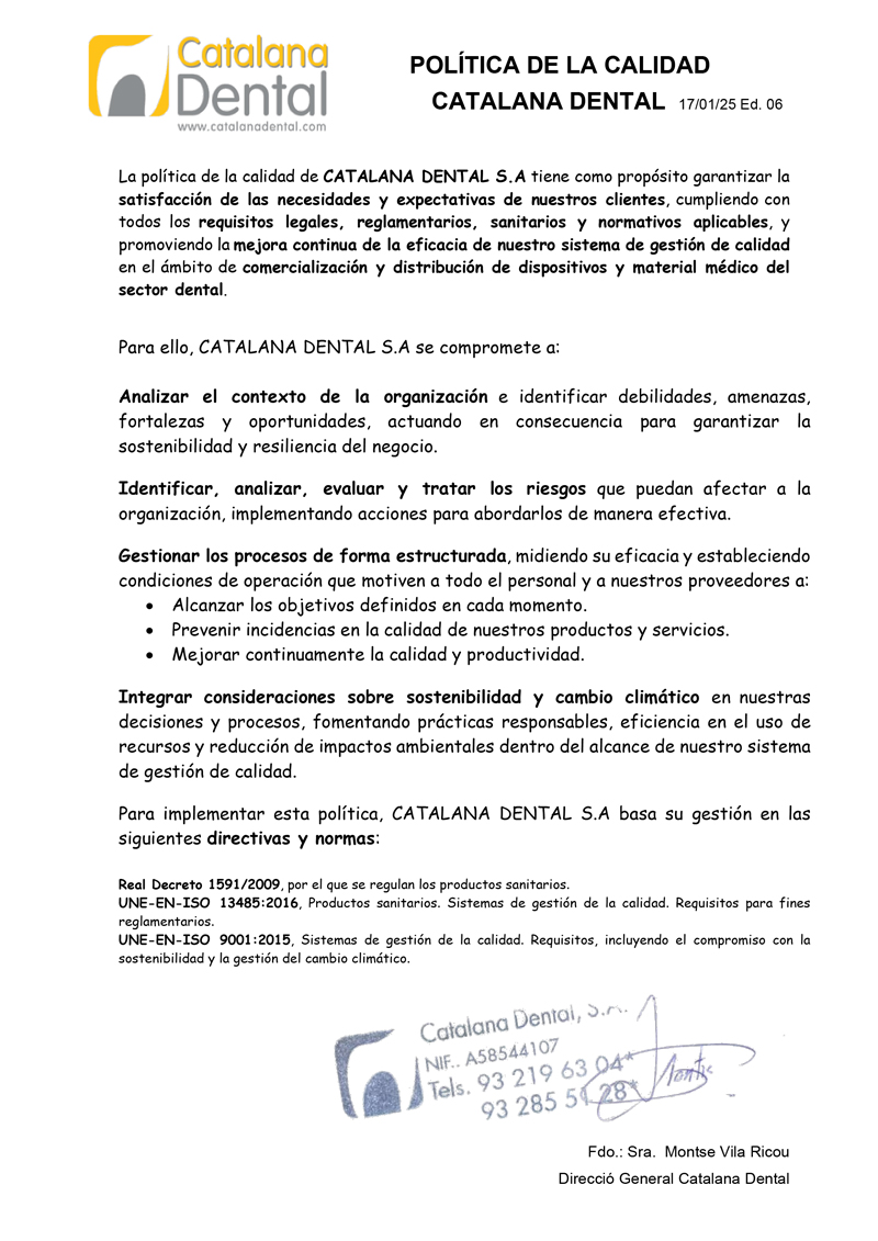 En Catalana Dental, contamos con certificaciones reconocidas que garantizan la máxima calidad en nuestros productos y materiales odontológicos.