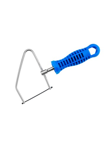La barra acodada permite el corte preciso y controlado de los segmentos dentales individuales. Hojas para segueta adecuadas disponibles en dos grosores.