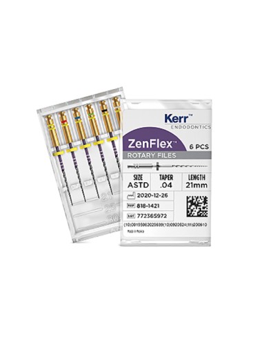 - Alta eficiencia de corte: diseñado con una sección transversal triangular con tratamiento térmico patentado, ZenFlex presenta una alta eficiencia de corte.