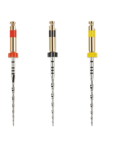 Limas Rotatorias ProTape Ultimate Surtidas. Una solución para el tratamiento del conducto radicular que combina la última generación de limas ProTaper NiTi, una desinfección mejorada y una obturación específica que funcionan juntos a la perfección. Las limas rotatorias ProTaper Ultimate están diseñadas para crear una forma profunda, optimizada para los siguientes pasos de tratamiento: 1 secuencia de deslizador-moldeador-finalizadores para cubrir una gama completa de situaciones anatómicas. Limas rotativas de NiTi con tratamiento térmico GOLD. Contenido: Blíster de 5 unidades surtidas de 25 mm (F1-F2-F3-SL-SH).