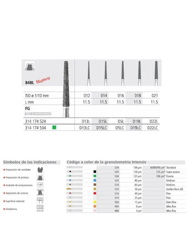 IT20472 Fresas de diamante y carburo-tungsteno de alta calidad. Acabado muy uniforme, de bajo desgaste y duración muy superior a otras marcas (2-3 veces más). Eliminación de restos mejorado y optimas propiedades de enfriamiento. Tipos de Turbina, Contra-ángulo y Pieza de mano.Caja de 6 unidades.
