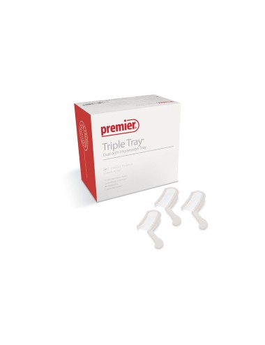 Todos los diseños de® impresión de la bandeja triple Premier® tienen correas muy delgadas y sueltas que no se distorsionan cuando el paciente se cierra.
