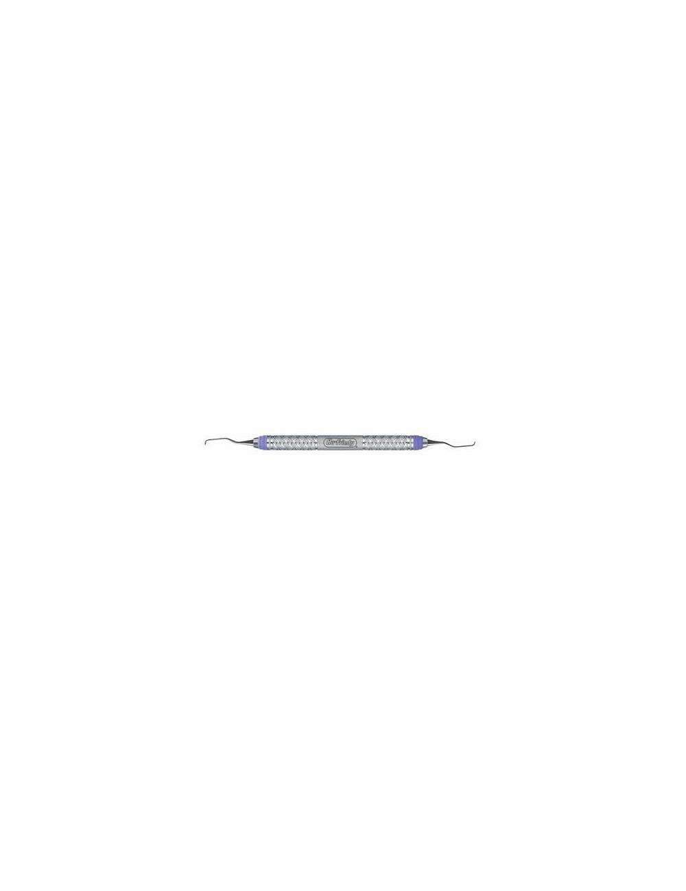 La Cureta Gracey Mini Five Rígido M-6 SAS11/12R6 de Hu-Friedy tiene un mango más grueso, más fuerte y menos flexible que el Gracey estándar, se utiliza para llegar a bolsas periodontales profundas y a las superficies de raíces de 5 mm. o más. Además, su hoja está reducida a la mitad de longitud, para una mejor adaptación en bolsas estrechas y en bifurcaciones, la cuchilla es un 50% más corta y un 10% más delgada. Bueno para escalar en los bolsillos profundos y estrechos