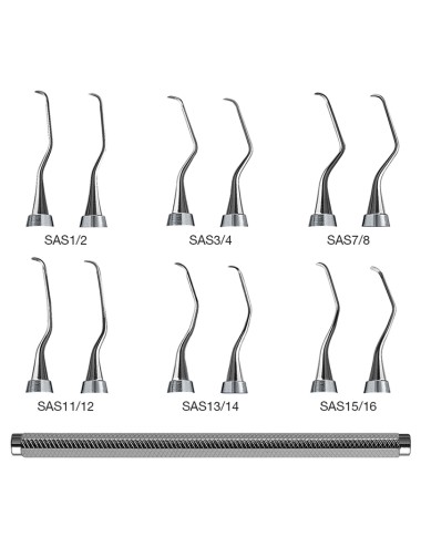 HF41755 Curetas diseñadas para áreas específicas de las superficies de los dientes, lo que permite una limpieza en profundidad del sarro y el tratamiento de las raíces.