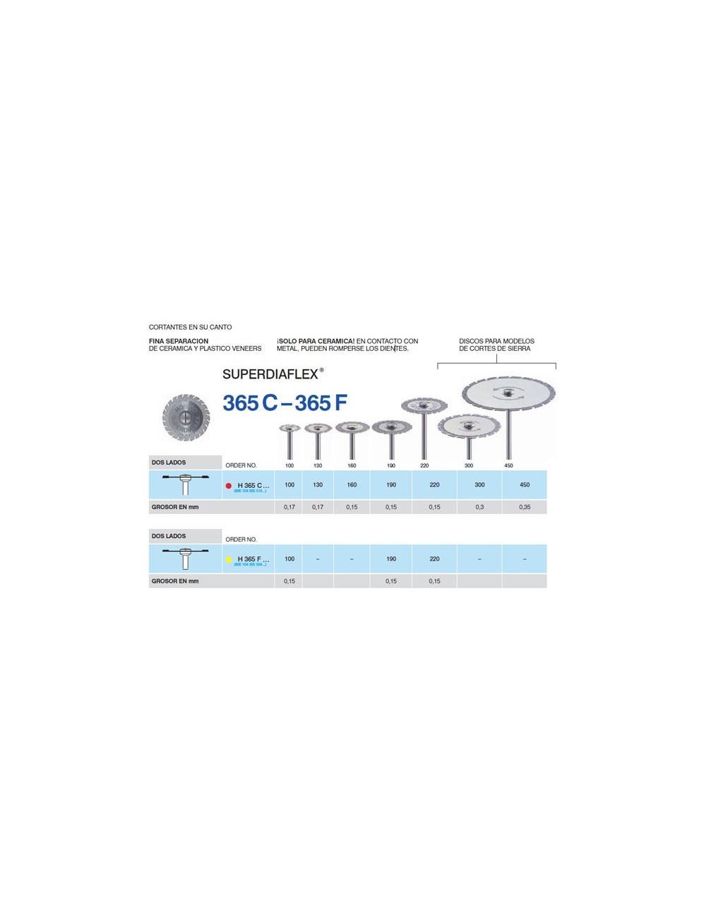Disco de diamante Superdiaflex F. Muy flexibles. Diamantado a dos caras. Con dentadura recta. Sólo para cerámica. Disco de ?22 mm. Grosor: 0,15 mm.