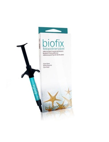 Biofix Fotocurable es un cementop auto-adhesivo especial de contacto ortodóncico para fijación de brackets metálicos, cerámicos y plásticos en el esmalte dentario.Presenta Flúor (Fluoruro de Sodio = 0,95% de iones Flúor), garantizando una acción profiláctica contra la desmineralización en el área de fijación del brackets.Ventajas:- Versatilidad: fijación de brackets de ortodoncia, metálicos, plásticos y/o cerámicos.- Fotocurable: control del tiempo de trabajo.- Ahorro de tiempo y dinero: no es necesario utilizar adhesivo.- Presencia de flúor.- Optima consistencia: los brackets no se mueven después de posicionados.- Grande adhesividad al esmalte dental.- Fácil manejo y aplicación.