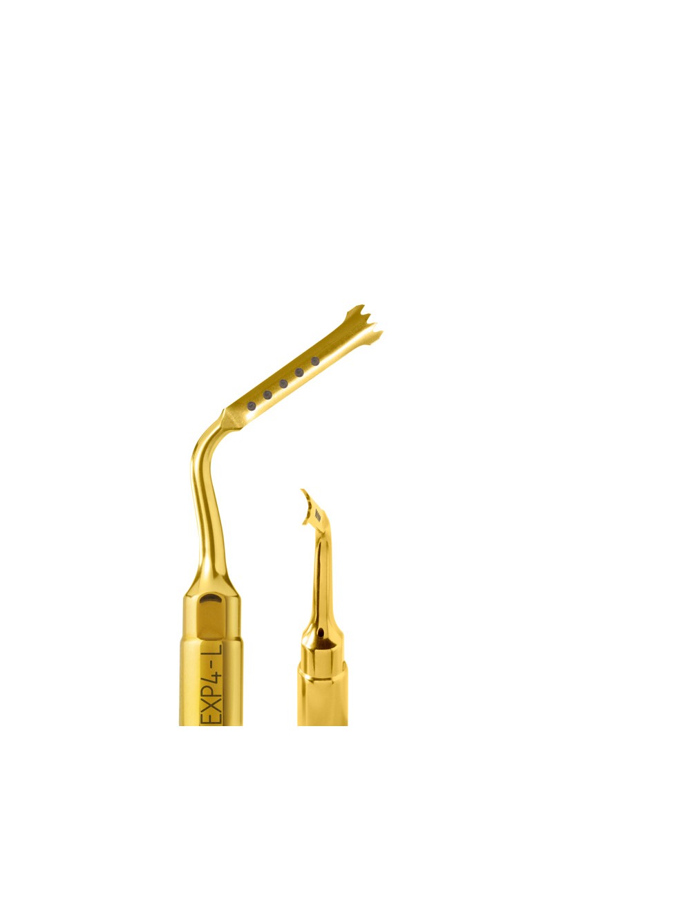 Inserto de explantación en ángulo izquierdo ACCIÓN DE CORTE Osteotomía periimplantaria APLICACIÓN CLÍNICA Explantaciones SUPERFICIE Recubrimiento de nitruro de titanio