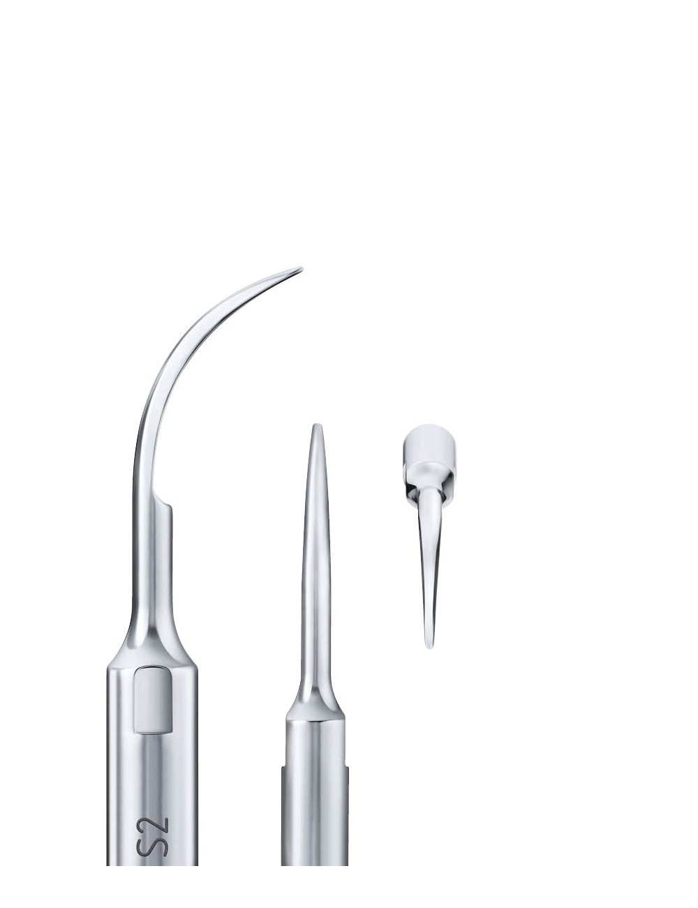 Sección transversal triangular y superficies redondeadas para el escalado interproximal IDENTIFICACIÓN escalada MORFOLOGÍA Cureta universal con superficie triangular ligeramente curvada SUPERFICIE Acero inoxidable de grado médico pulido brillante TRATAMIENTO Eficaz en los espacios interdentales y en las superficies posteriores