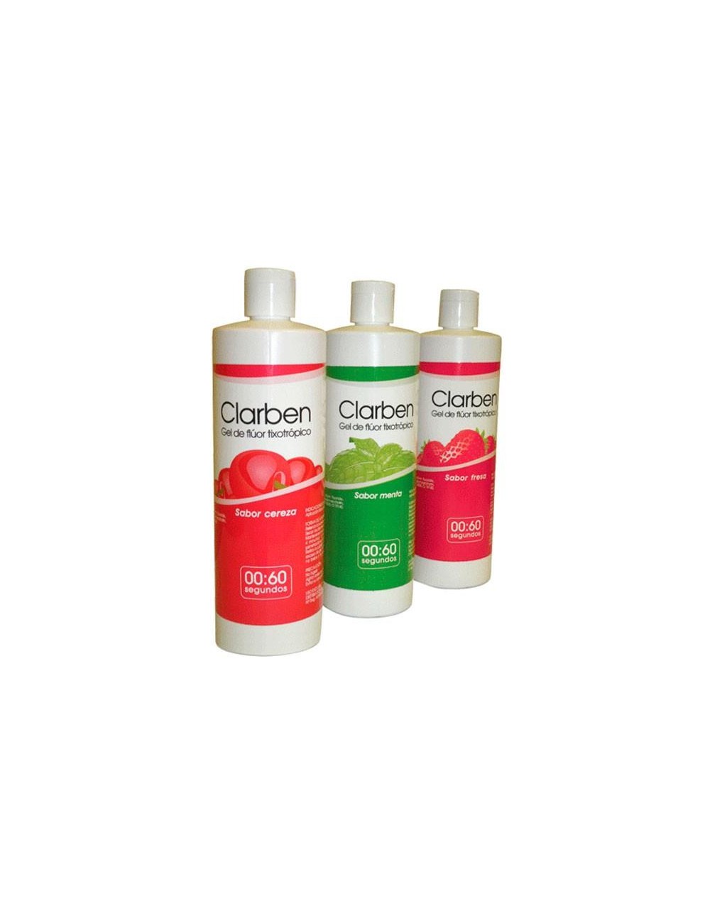 Gel de fluor con una concentración de Ion fluoruro del 1.23%. Un minuto de aplicación. Tixotropico (no se cae de la cubeta). Sabores muy agradables ( cereza, fresa y menta). Con indicador de nivel.Sabor menta. Bote con 500 ml. de gel flúor.