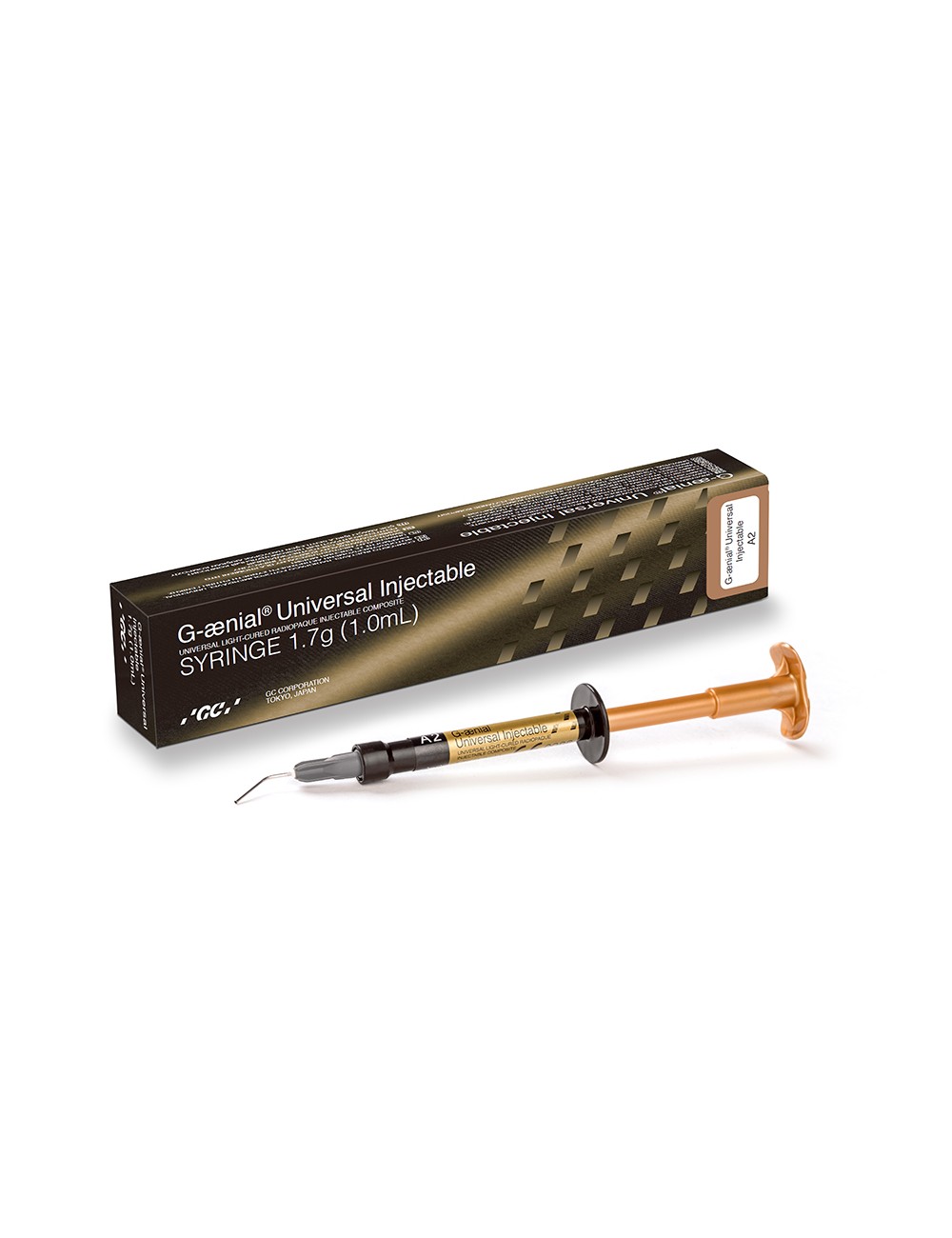 G-ænial Universal Injectable es un composite restaurador universal que muestra una resistencia excepcional para las restauraciones estéticas duraderas. Con una elevada carga de partículas de bario ultrafinas y la tecnología de recubrimiento de tipo silano de cobertura total (FSC) de GC, es increíblemente resistente, más incluso que los composites en pasta líderes del mercado. Gracias a estas asombrosas propiedades, G-ænial Universal Injectable está indicado para todo tipo de cavidades sin capa de recubrimiento. También cuenta con una elevada radiopacidad del 252 %, ideal para hacer un seguimiento de las restauraciones y detectar de un modo sencillo las caries secundarias. Su exclusiva y elevada viscosidad tixotrópica se adapta a cualquier situación clínica: el material no se descuelga durante la colocación pero puede fluir cuando se utiliza con un instrumento. Asimismo, no se pega a la punta, lo que facilita su aplicación. G-ænial Universal Injectable cuenta con puntas de dosificación con una aguja larga que puede doblarse presionando levemente con los dedos, lo que le ofrecerá acceso a cualquier cavidad posterior complicada. Además de todo ello, G-ænial Universal Injectable ofrece una capacidad de pulido y una retención del brillo inigualables disponible en 16 colores con tres niveles de translucidez, lo que lo convierte en una opción excelente para la estética a largo plazo.