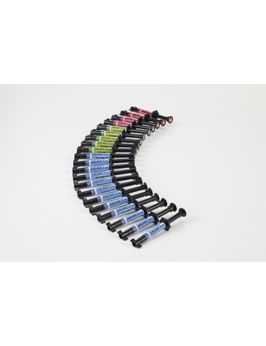 Nuevo material estético que combina resina, vidrio para efecto de traslucidez con trasmisión óptica y nanorrelleno de sílice para obtener el mejor pulido y mayor resistencia a la fractura. Válido para anteriores y posteriores.10 cómpules.