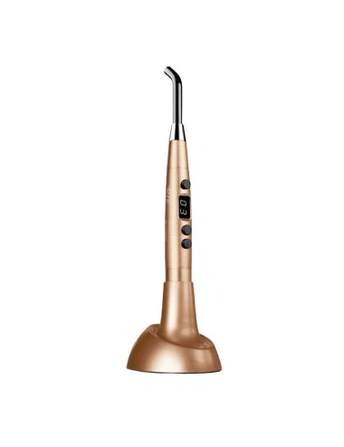 -Esta lámpara de fotocurado posee una guía de luz que facilita el acceso a cualquier parte del diente. Posee una fibra óptica que proporciona una intensidad de la luz mucho más alta y puede irradiar verticalmente y desde cualquier ángulo por lo que es especialmente adecuada para los dientes posteriores y ofrece una intensidad de luz constante, por lo que la polimerización no se ve afectada por el consumo de la batería.
